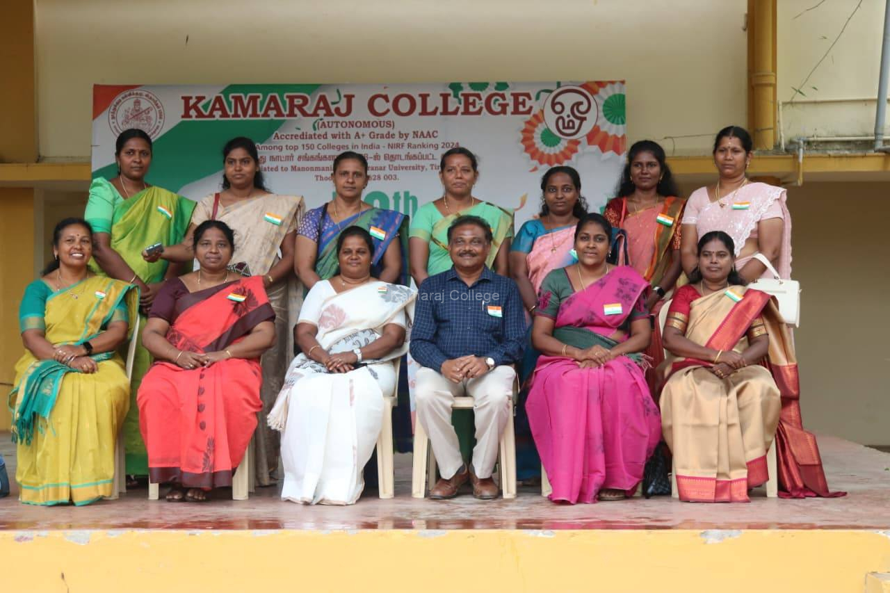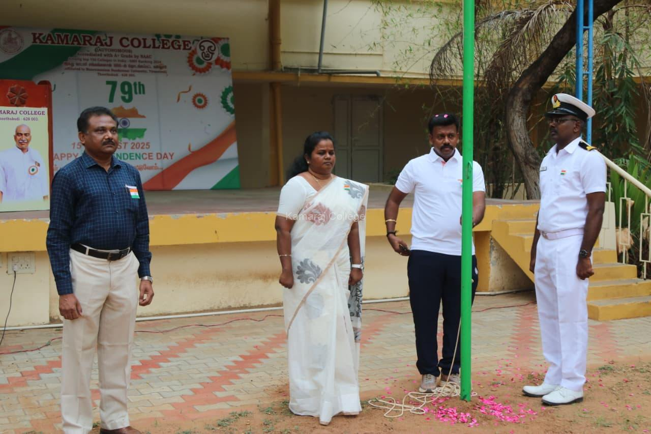 The 79th Independence Day Celebration at Kamaraj College was held with immense pride, joy, and patriotic fervour on 15 August 2025. The entire campus was beautifully decorated with the colours of the national flag, symbolising freedom, unity, and sacrifice. Students, faculty, and staff came together to make the event memorable, filling the atmosphere with energy, enthusiasm, and respect for the nation’s history.