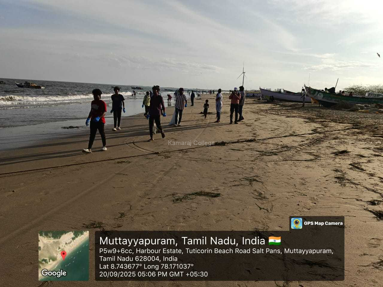 The Coastal Cleanup Program by NSS Units 56, 145 and 181 of Kamaraj College (Autonomous), Thoothukudi, was conducted on 20th September 2025 from 4.00 p.m. to 6.00 p.m. at the Harbour Beach, Thoothukudi. This program was organized in collaboration with the Environmental Protection Movement and the South Tamil Nadu Spic Nagar Rotary Club. The event highlighted the importance of environmental responsibility, waste reduction, and the collective role of students in building a sustainable future.