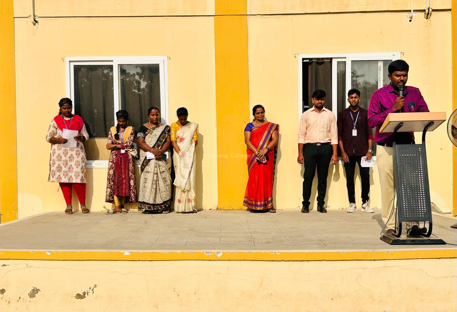 Following this, the Kalluri Vaalthu Paadal (College Anthem) was rendered with respect and pride by the students. The anthem symbolizes the institution’s legacy, academic values, and commitment to nurturing responsible citizens.