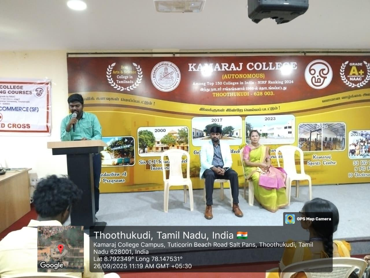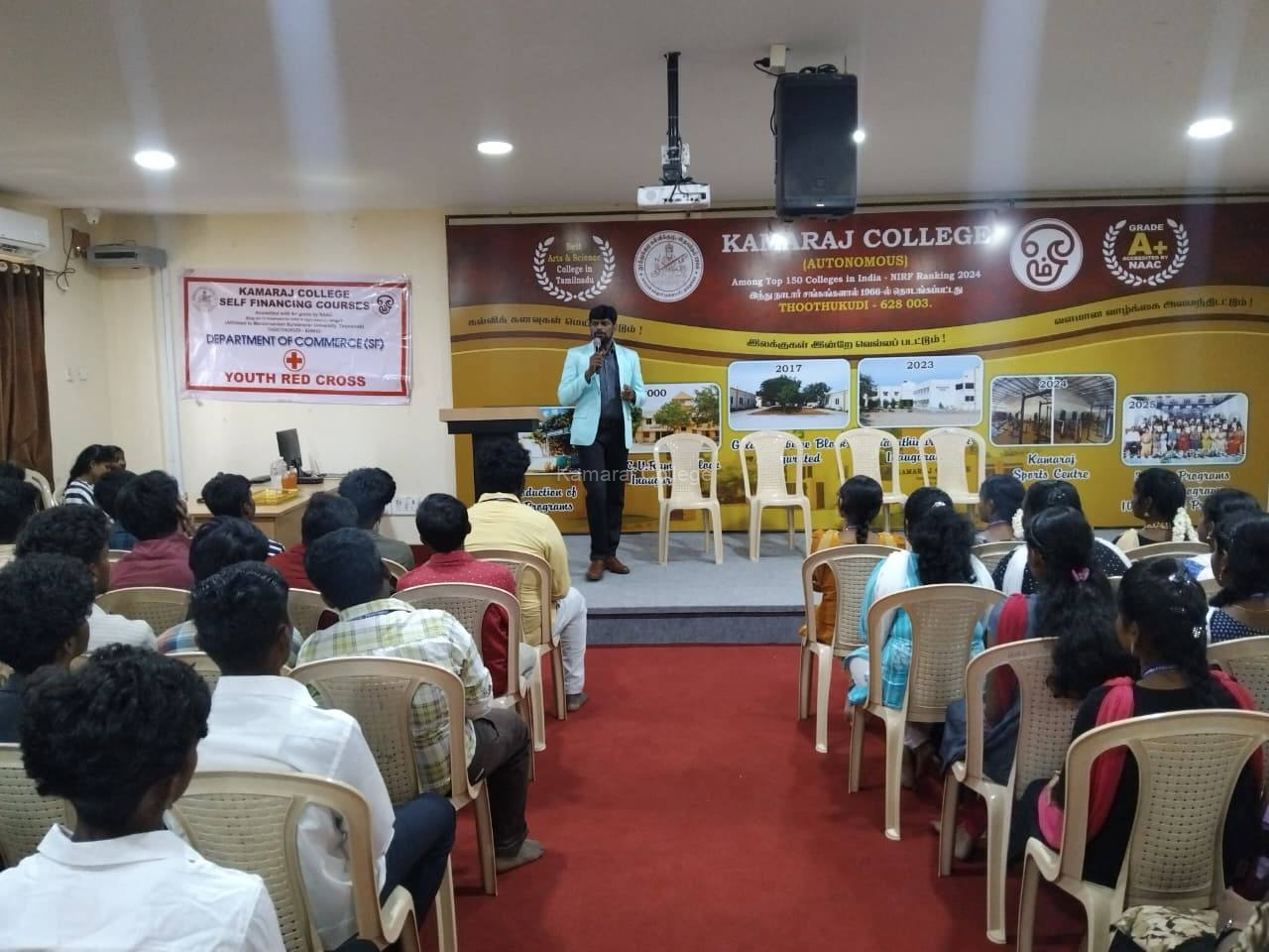 The event was executed smoothly due to the combined efforts of the Department of Commerce and the Youth Red Cross (YRC). Faculty members coordinated the logistics, ensured proper seating and timing, and facilitated a conducive learning environment. YRC provided valuable resources and guidance to enhance the session’s effectiveness. Their collaboration reinforced Kamaraj College’s commitment to creating awareness on social issues and promoting holistic development among students.