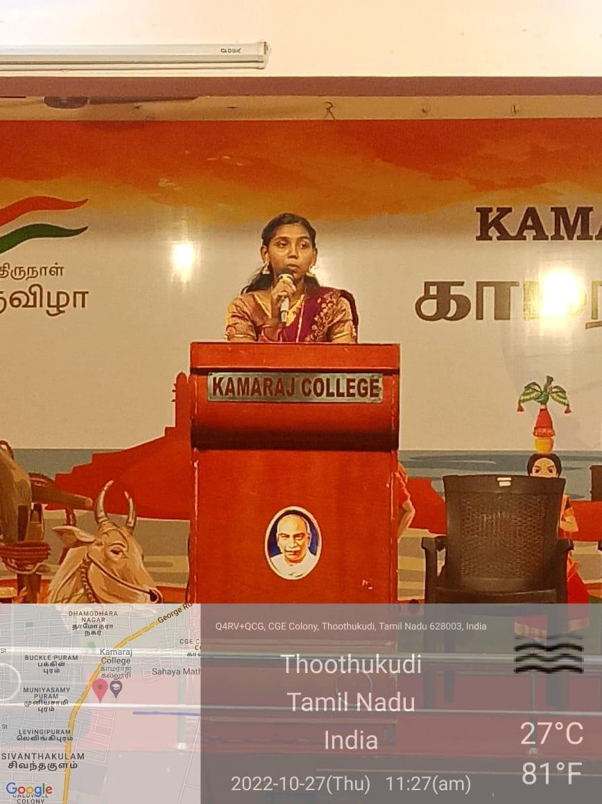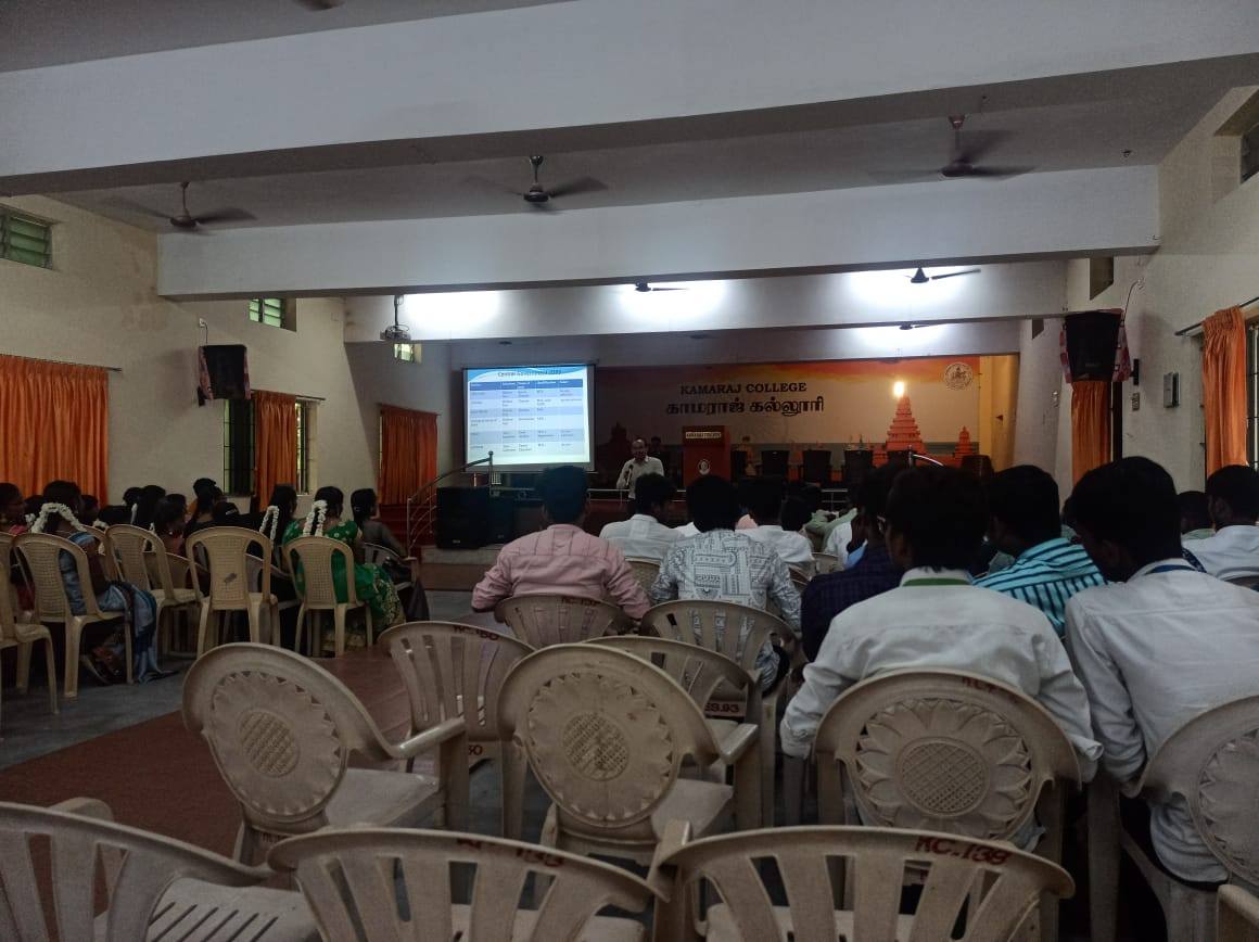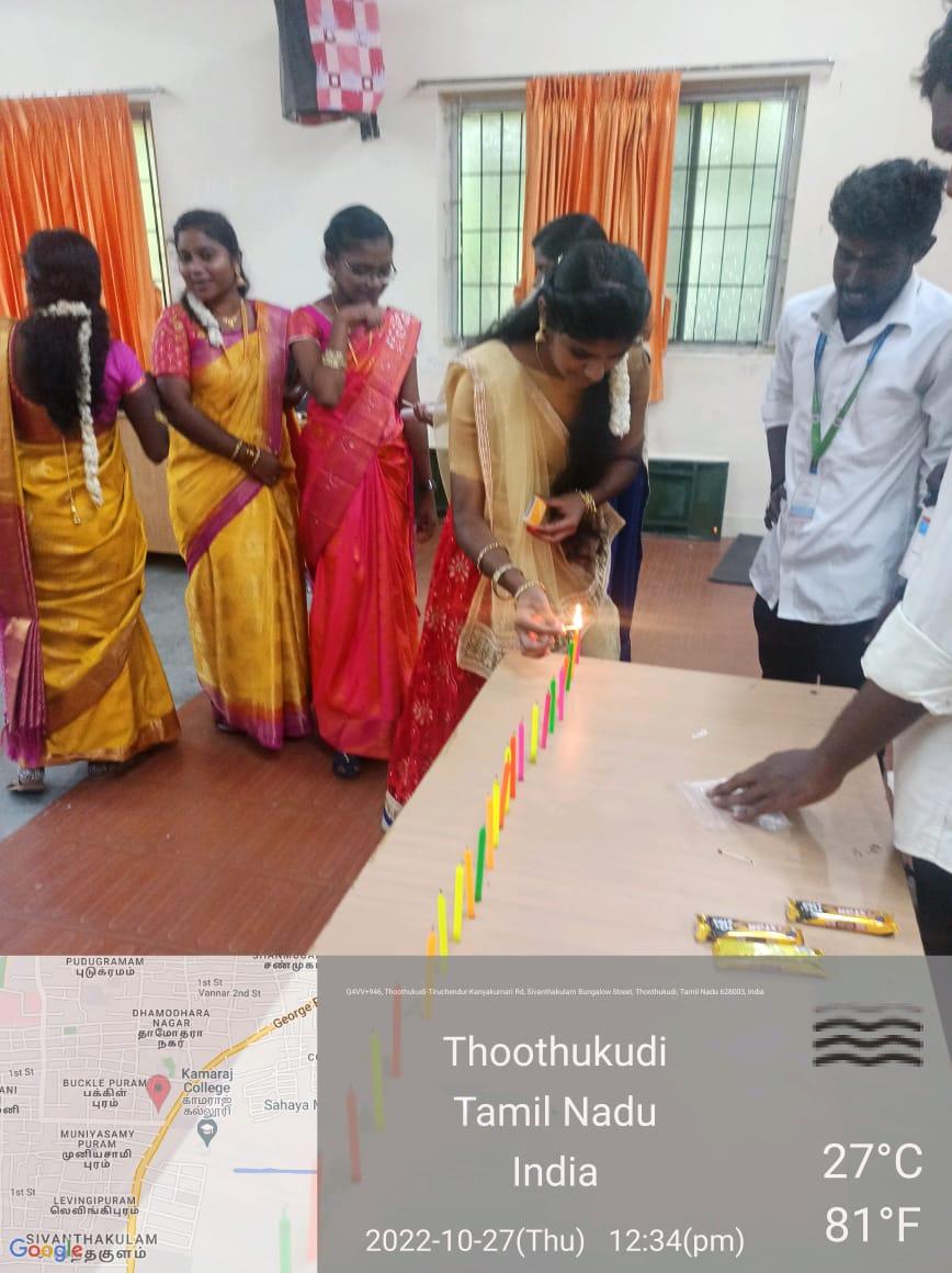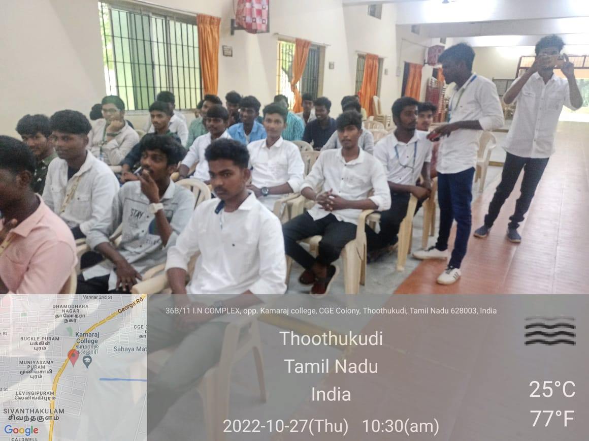 The Department of Chemistry organized its Association meeting cum Freshers day on 27.10.2022 at Kamarajar Kalvi Arangam. Ms. P. Divyashree of III B.Sc. Chemistry welcomed the gathering. The Chief Guest of today’s program was Dr. I. Abulkalam Azath, Assistant Professor of Chemistry, Aditanar College, Tiruchendur and he delivered a lecture on the topic “Career Opportunities”. Our Department’s senior students conducted a quiz program, a connection game related to chemistry, lighting the candle, etc., and made their juniors active participation with happiness in the events. Finally, Mr. C. Poyyamozhi of III B. Sc. Chemistry proposed a vote of thanks.