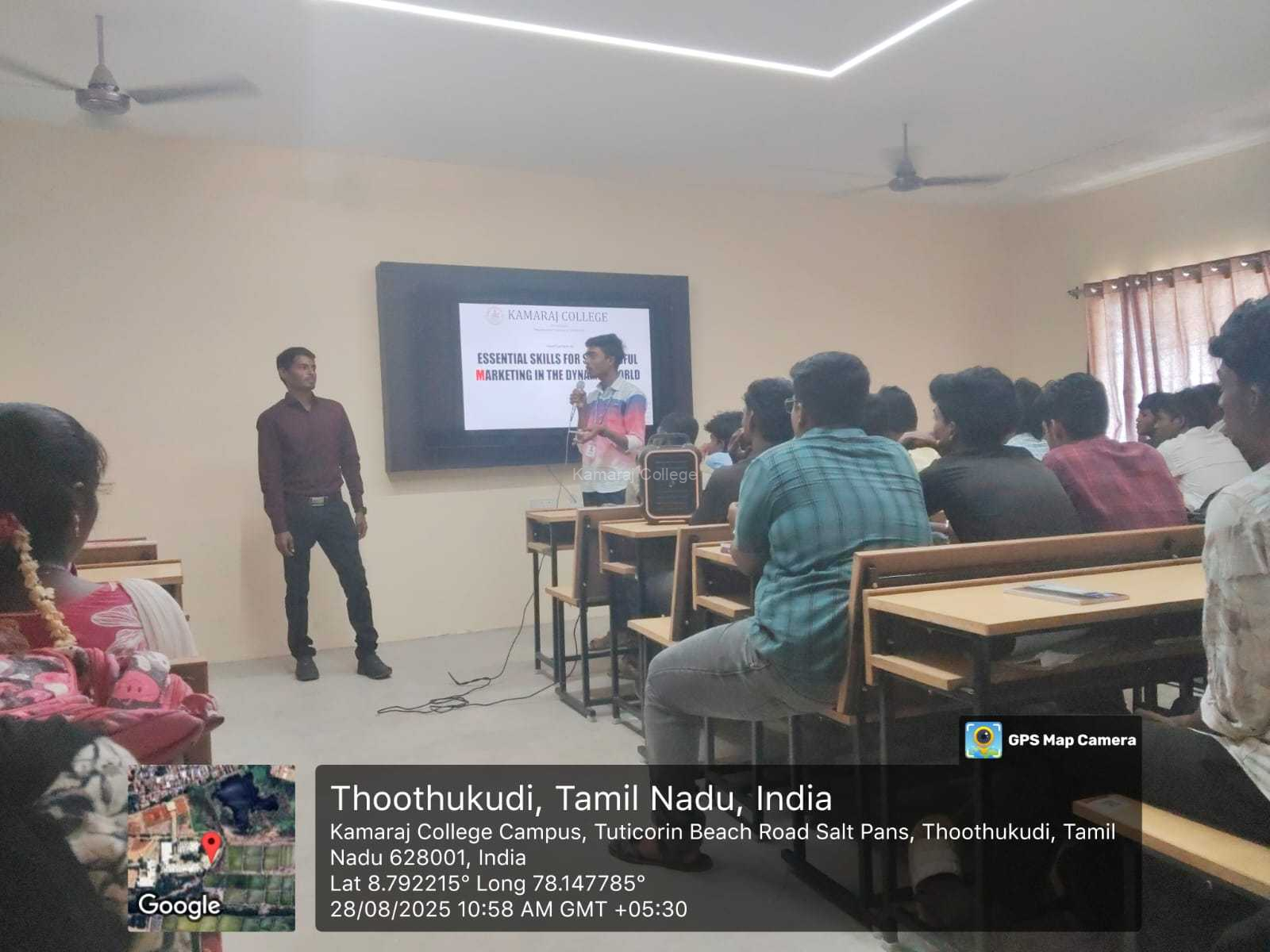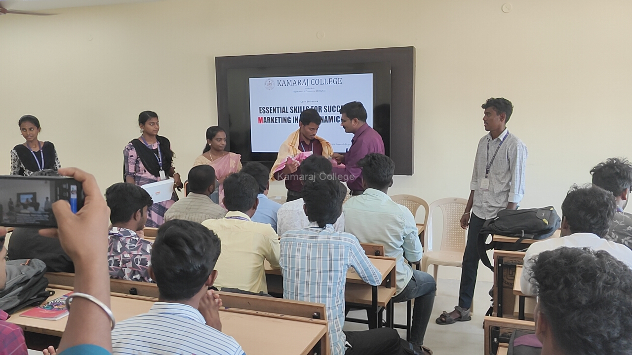 The Guest Lecture on Essential Skills for Successful Marketing in the Dynamic World organized by the Department of Commerce, Kamaraj College, was highly beneficial to the students. It provided them with the opportunity to learn directly from an experienced academician who combined theory with practical applications.