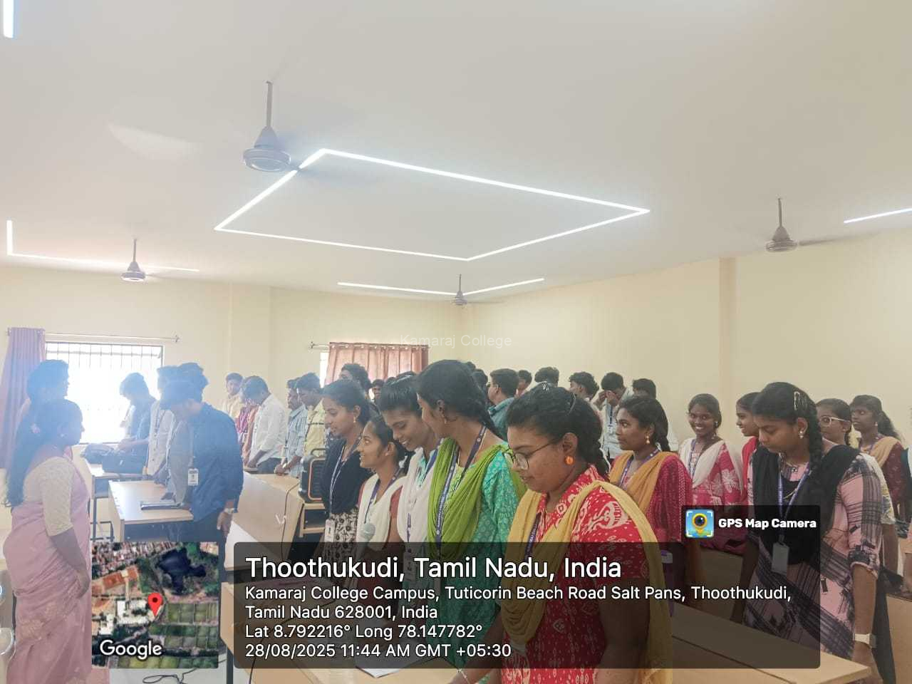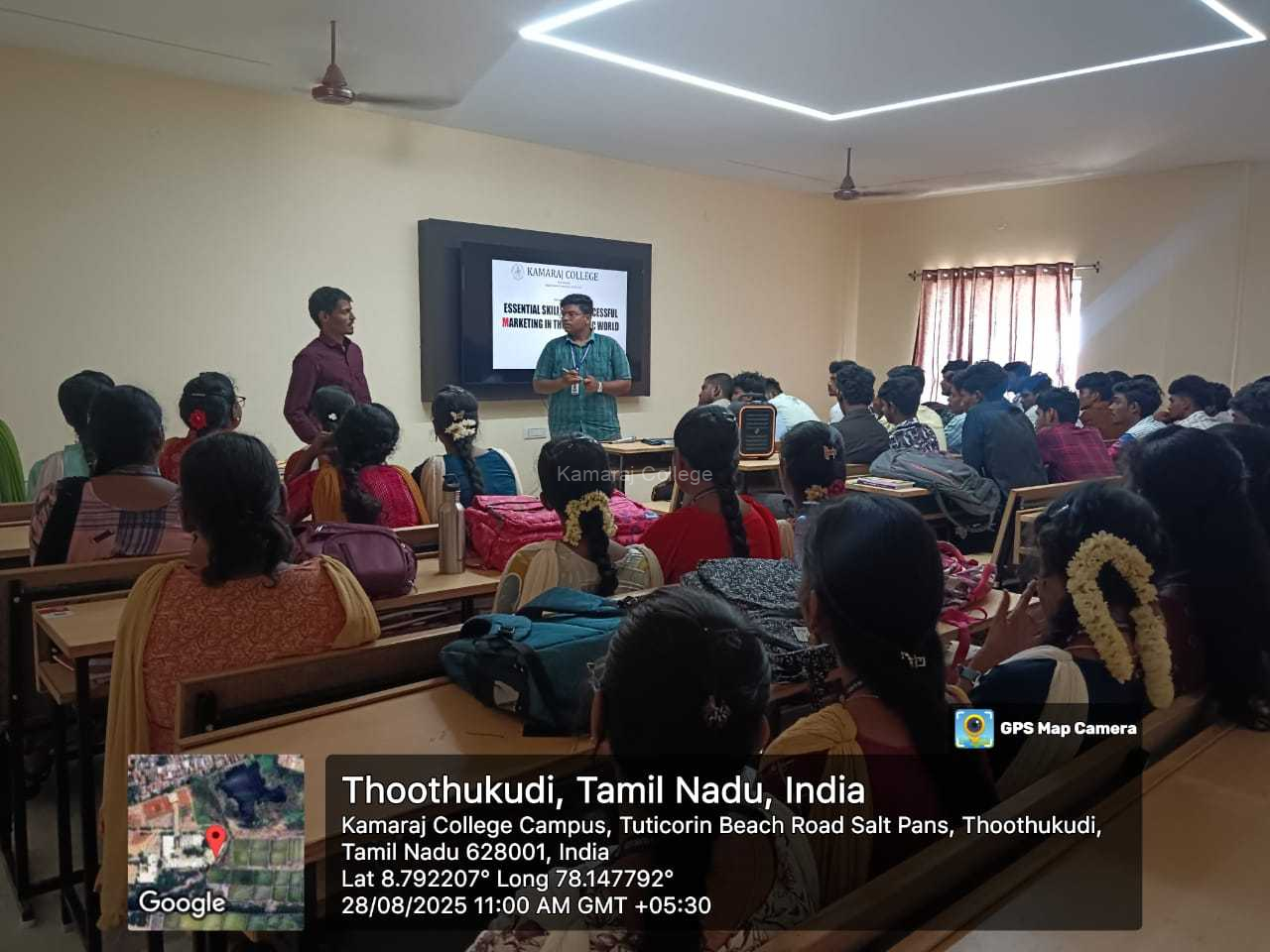 The Department of Commerce, Kamaraj College (Autonomous), Thoothukudi, successfully organized a highly insightful Guest Lecture on Essential Skills for Successful Marketing in the Dynamic World on 28th August 2025. The programme was held from 10.00 am to 12.00 noon at the Golden Jubilee Block and was attended by undergraduate and postgraduate students of commerce.
