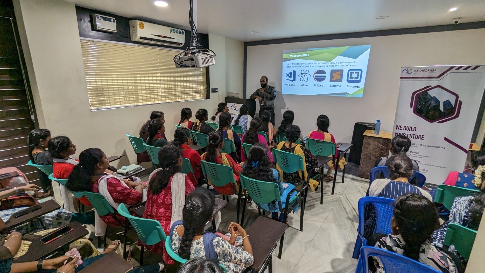 The students gained knowledge about the internship programs for UI/UX Design, Android APP development, Fullstack development and Business Analyst. A batch of 55 students from MCA and M.Sc. Computer Science with AI participated and completed it successfully. The Staff members Dr. G. Sophana, Dr. R. Sheeba Mary Ananthi, Dr. S. Balamurugan and Mrs. Jeya Selvakumari accompanied the students.