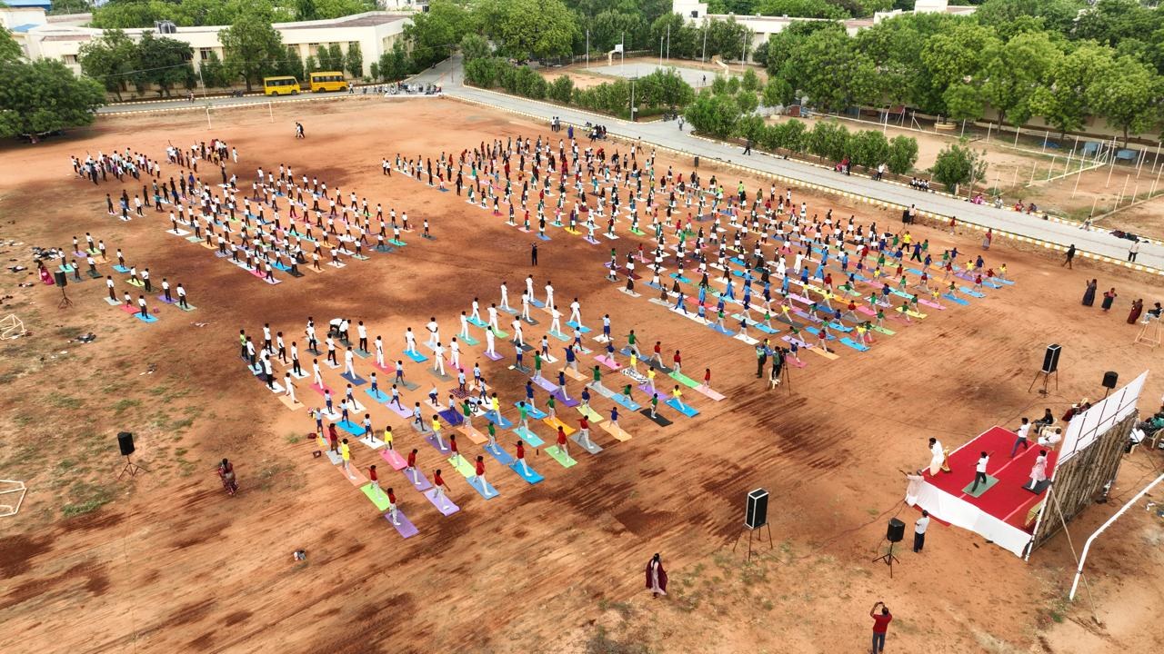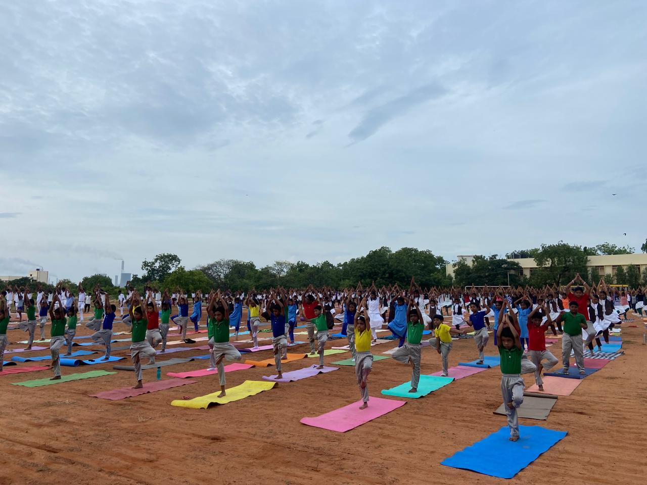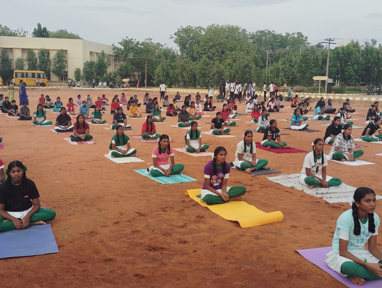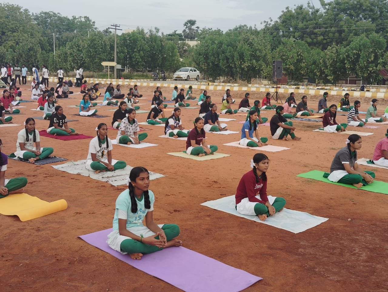 Vivekananda Kendra, Thoothukudi Branch and Kamaraj College jointly organised an “International Day of Yoga 2024” on Friday 21.06.2024 at 06:00 AM at Kamaraj College ground. The ceremony started with Shanti Mantra and Dr. J. Poongodi, Principal gave the welcome address. All India Vivekanada Kendra Vice President Mananeeya Shri. Hanumantha Rao delivered his speech about the role of yoga in protecting the body and mind. Nearly 800 students from various schools and our college were participated in this grand celebration and were taught preparatory exercises, asanas, pranayama, patanjali salutations. All the Schools and College students were received their participation certificates and institutions were honoured with the momento. Mr. M. Balamurugan, Secretary, Vivekananda Kendra, Thoothukudi delivered the vote of thanks. In this program, Vivekananda Kendra Thoothukudi Nagar Sanchalak Mrs. Subathra Vetrivel, Vivekananda Kendra Rural Development Programme – Secretary Mr. Ayyappan, faculty members of Kamaraj College were presented.
