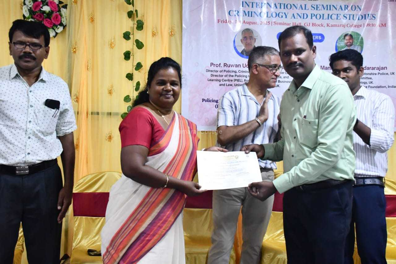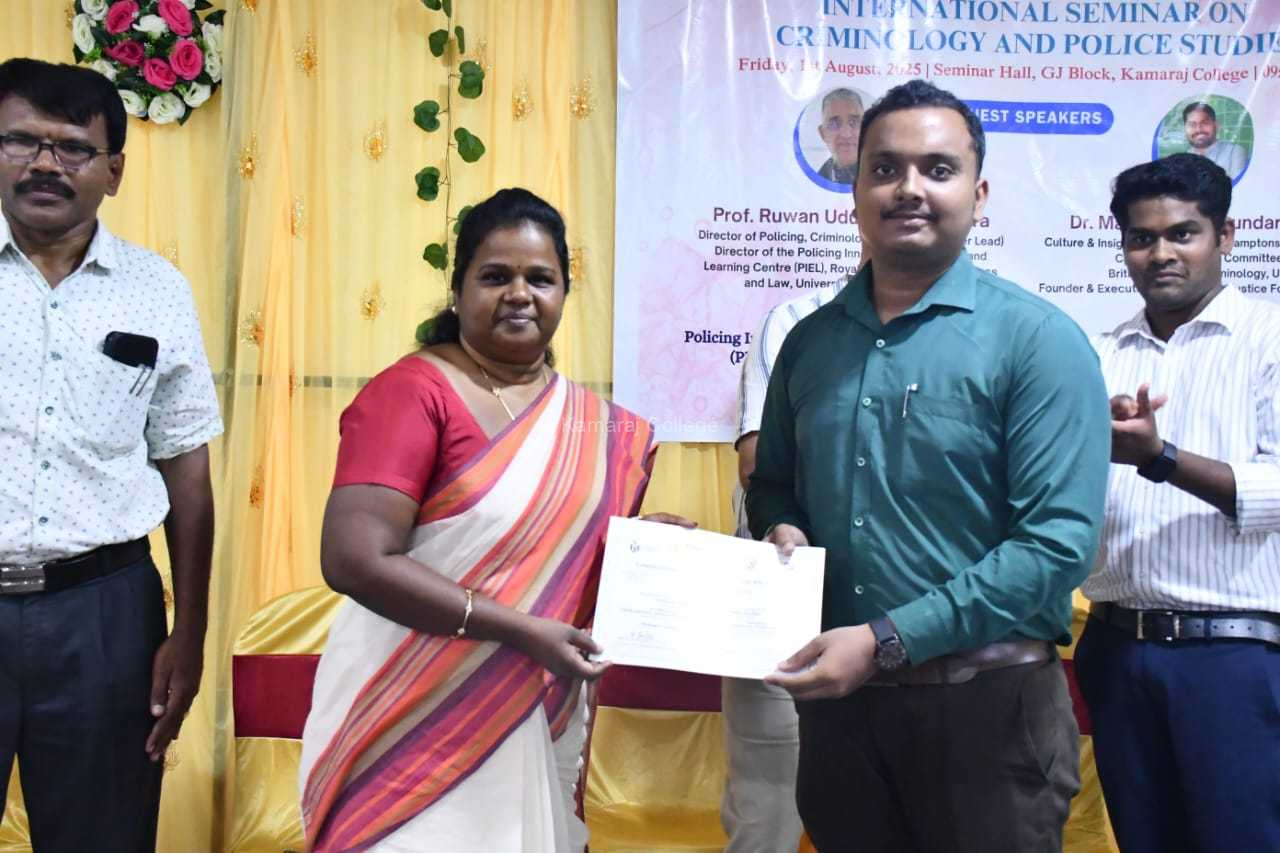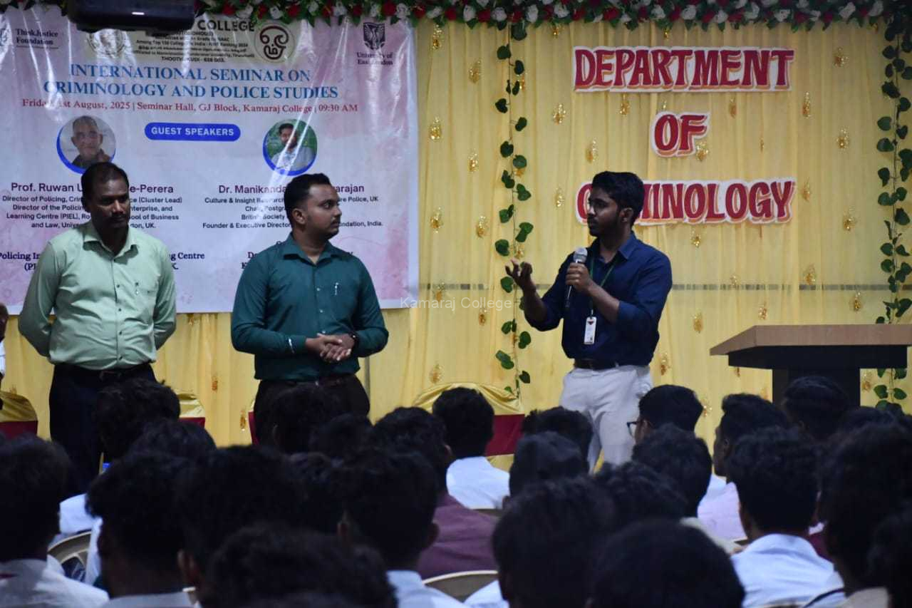 The International Seminar on Criminology and Police Studies held at Kamaraj College was an exceptional academic initiative that brought together knowledge, culture, and practice. It not only broadened the horizons of the students but also emphasized the role of youth in shaping a safer society.