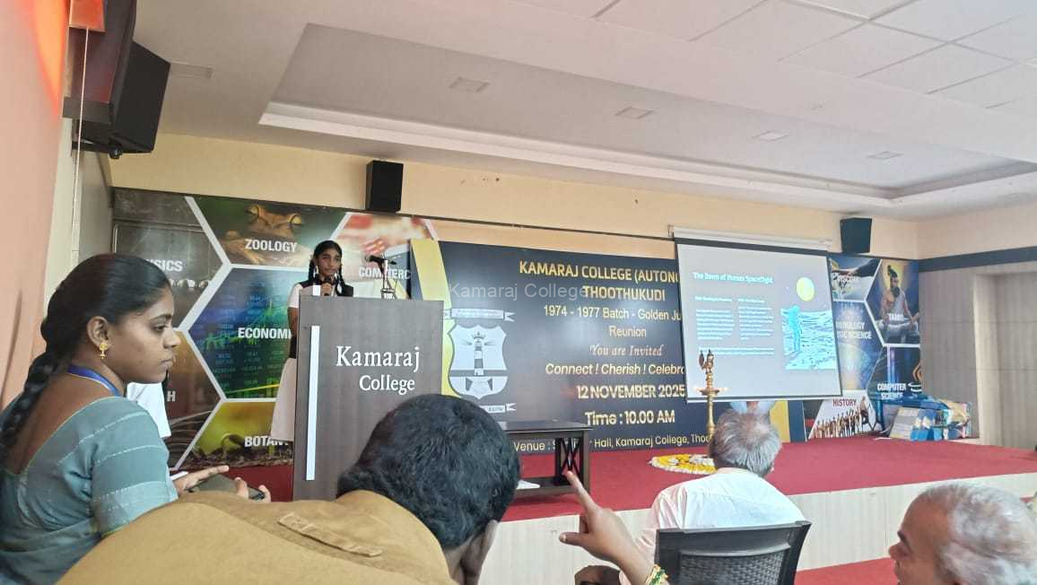The Department of Physics of Kamaraj College (Autonomous), Thoothukudi organized the International Symposium on Human Space Exploration 2025 on 12th November 2025 from 10:30 a.m. to 1:00 p.m. at the AMMS Ganesan Nadar Block Seminar Hall. The event brought together students, faculty members, and science enthusiasts to explore the exciting theme — “Humans in Space: Our Next Great Adventure.”