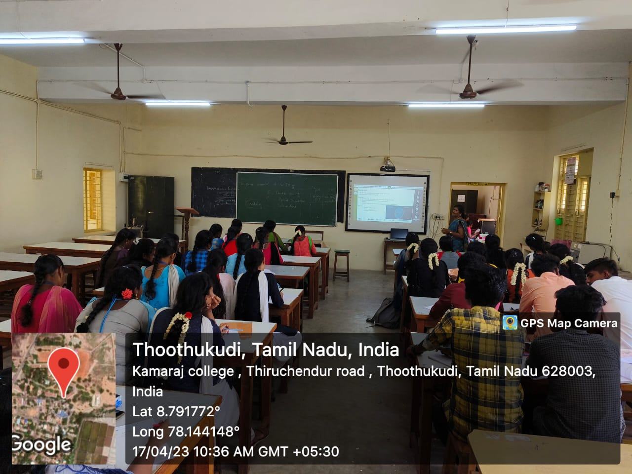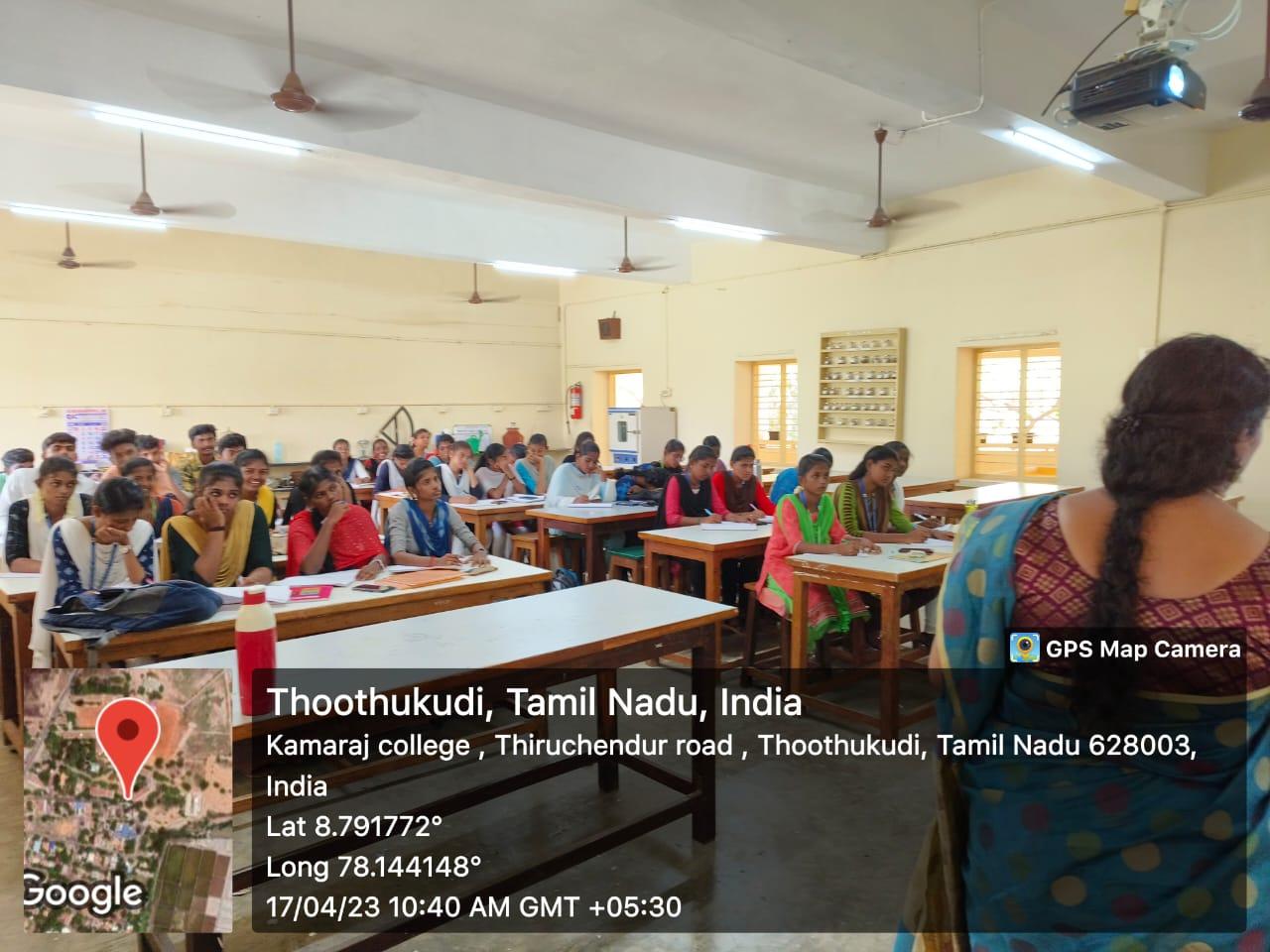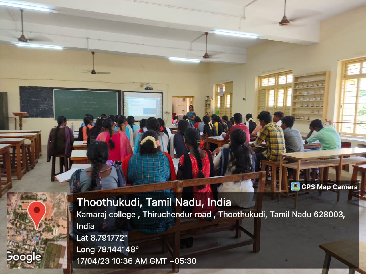 Mrs. Ponmala, the pharmacist, took a medical coding course under the Naan Mudhalvan Scheme for final-year Botany students at the Botany Lab on April 17th, 2023 (Day 5). The students attended the class actively and enthusiastically and were asked to take the assessment test at the end of the class. The course program was organized by Dr.J. Poongodi, Principal, Dr. C. Kasthuri, Co-coordinator, Naan Mudhalvan Scheme, Kamaraj College, Course in-charge Dr. T. Kumareswari, Dr. M. Muthu Sheeba, Assistant Professor of Botany, Kamaraj College, Thoothukudi -3.