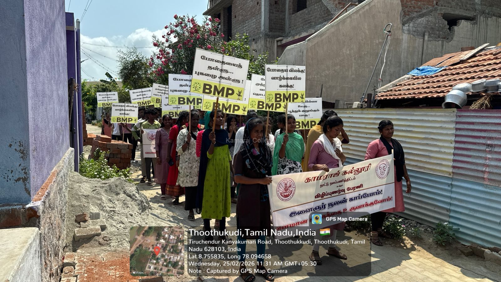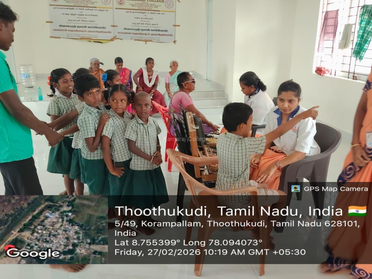 The NSS Rural Service Camp 2026 was organized by Units 54, 56, and 145 of Kamaraj College (Autonomous), Thoothukudi from 22 February 2026 to 28 February 2026 between 7.30 a.m. and 05.00 p.m. The seven-day residential camp was conducted in the villages of South Kalangarai, North Kalangarai, and Periya Nayagiyapuram.