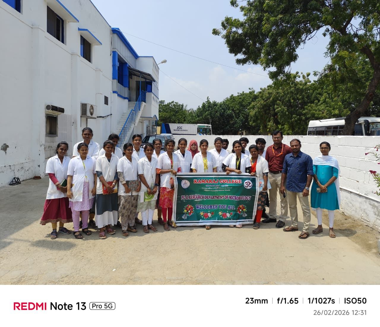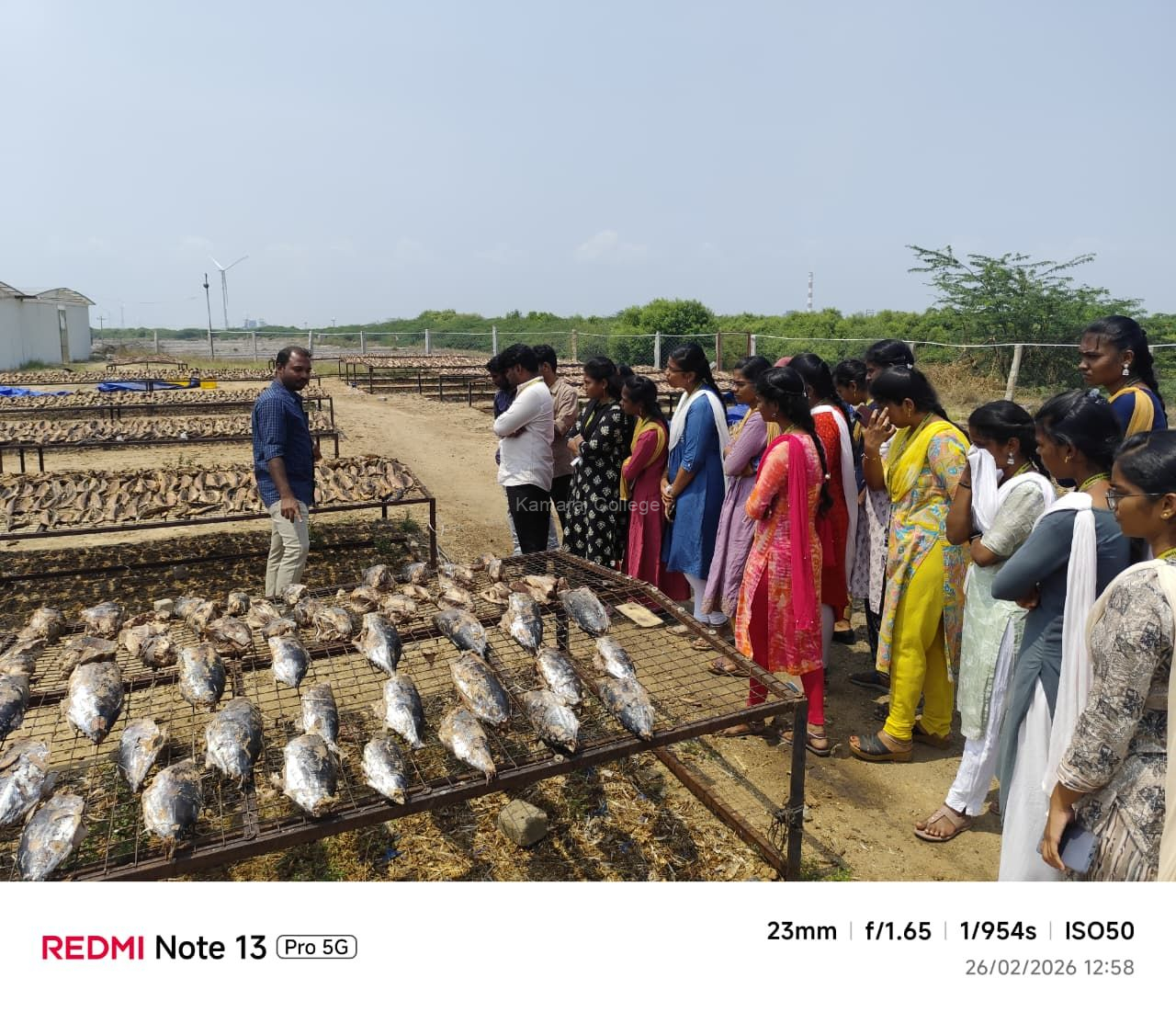 On 26 February 2026, from 10.00 a.m. to 03.00 p.m., the Post Graduate and Research Department of Microbiology of Kamaraj College (Autonomous), Thoothukudi organized a Seafood Industrial Visit to JCC Marine Exports and a nearby dried fish processing unit in Thoothukudi, Tamil Nadu.