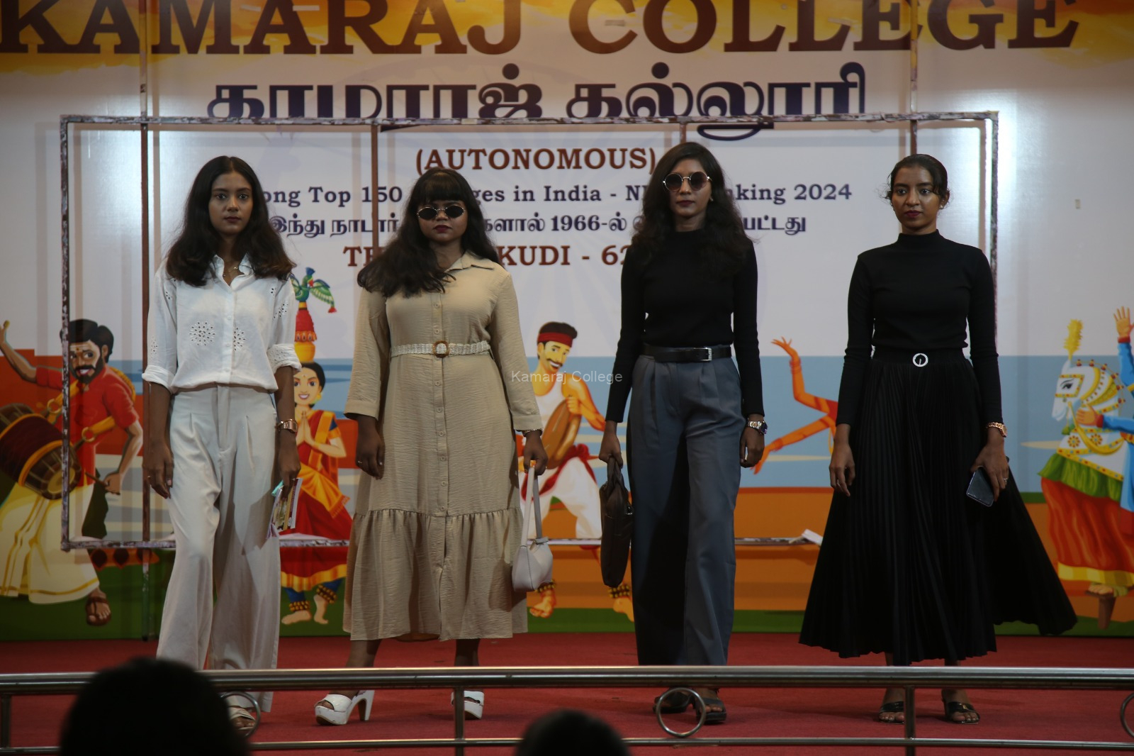 On 18.09.2025, the second day of the Thamirabharani Rolling Trophy 2025, competitions included On Spot Photography, Reels Making, and Fashion Walk. Photography winners were E. Marimuthu from BBA in first place, followed by M. Hariharan from BA Public Administration and B. Karthick from Computer Science (Aided). The Reels Making Contest showcased creativity in digital storytelling, with Commerce (SF) securing first place, Computer Science (SF) second, and English (SF) third. The Fashion Walk at Kamarajar Kalvi Arangam saw eight teams presenting stylish performances. Commerce (Aided) won first, Commerce (SF) second, and Business Administration third.