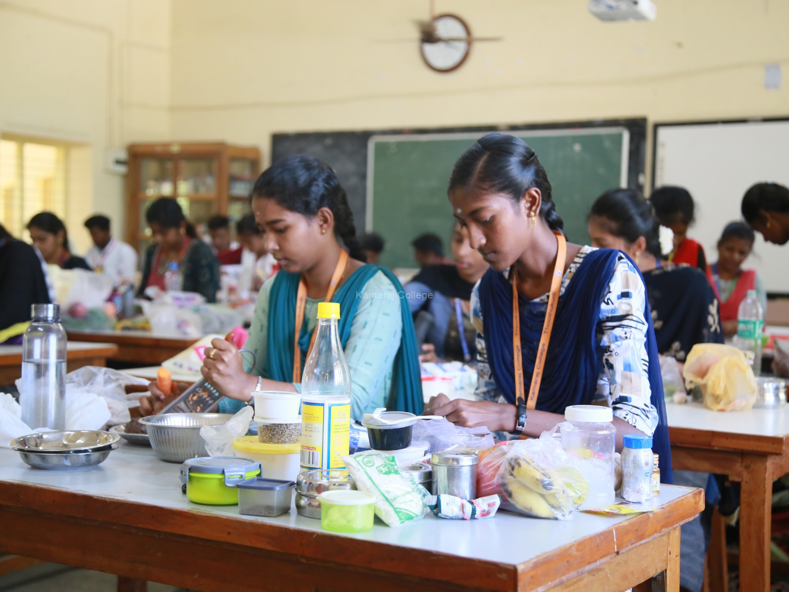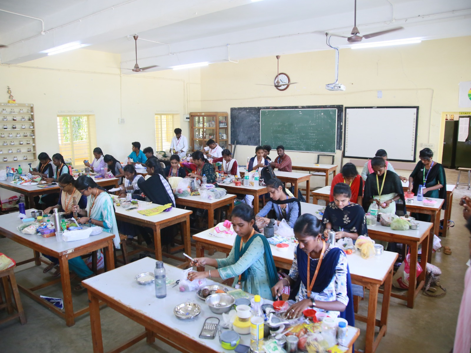 On the same day, the Fireless Cooking Competition was held at the Botany Lab in the SV Block. A total of 32 students from 16 departments participated and prepared creative, healthy dishes without using fire. The judges admired the innovation and taste. R. Aman Gary and M. Karuppasamy from Computer Science (SF) won the first prize, followed by V. Indusha and H. Pavithra from Commerce (Aided) in second place, and A. Dhanushya and A. Anushya from English (SF) in third.