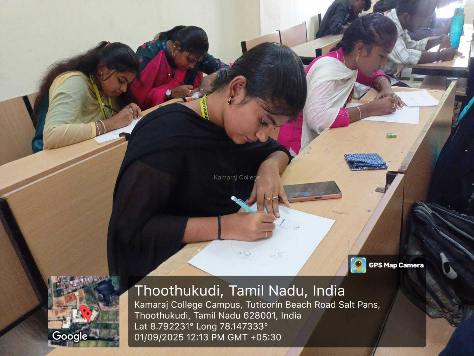The PG and Research Department of English (SF), Kamaraj College, Thoothukudi proudly celebrated Women Equality Day on 1st September 2025. The event took place in the Golden Jubilee Block at 10:30 am and featured a special Drawing Competition based on the theme of gender equality and empowerment. The aim of this program was to spread awareness among students about the importance of equal opportunities for women and to provide a platform to express creativity through art.