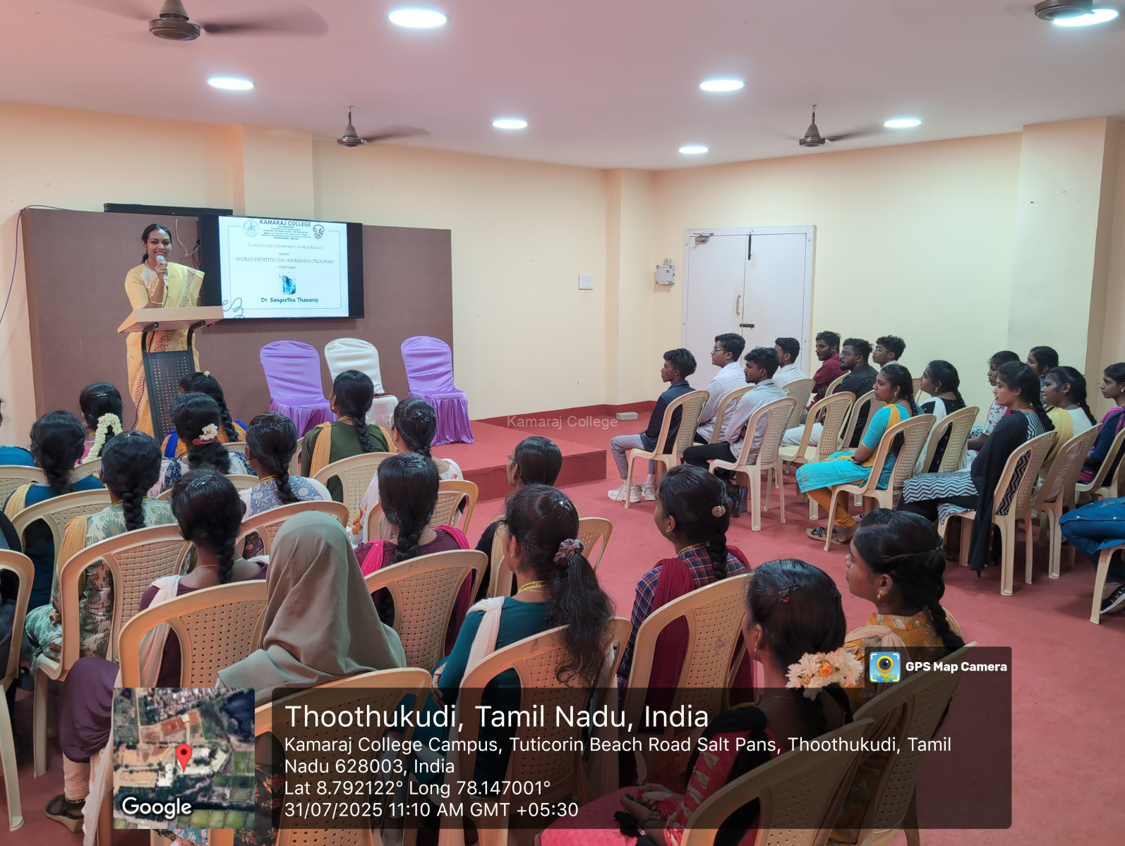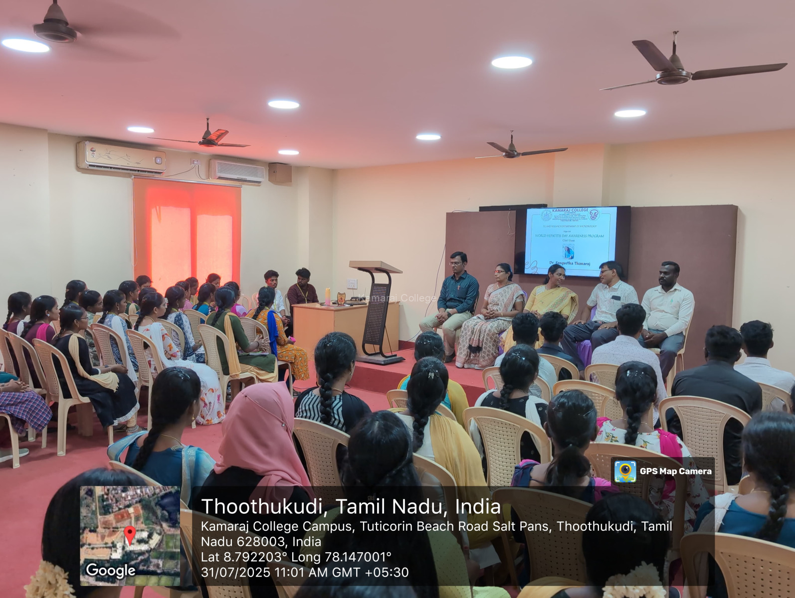 The session began with a formal inauguration, where Dr. A. Arunachala Rajan, Vice Principal of Kamaraj College, honored the chief guest with a warm welcome. He appreciated the department’s consistent efforts in organizing health awareness activities that benefit the student community and promote preventive healthcare education.