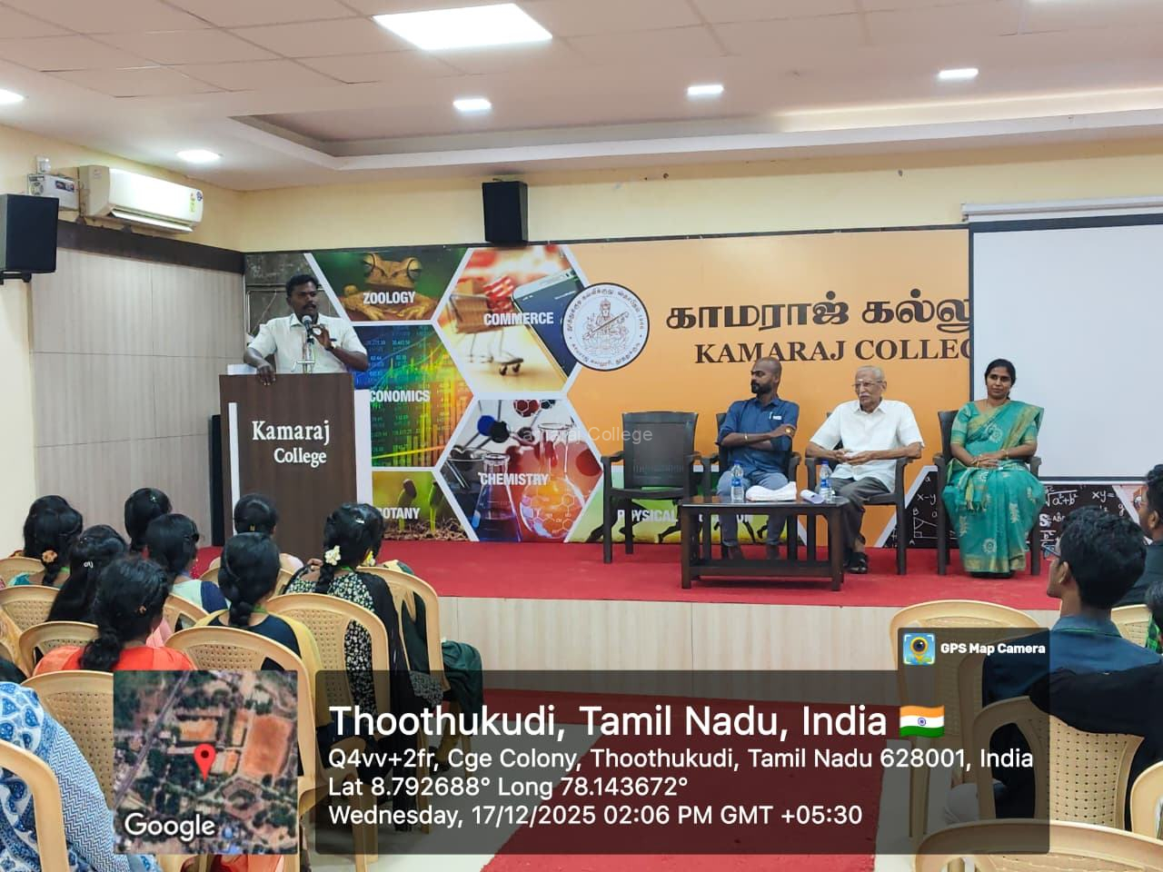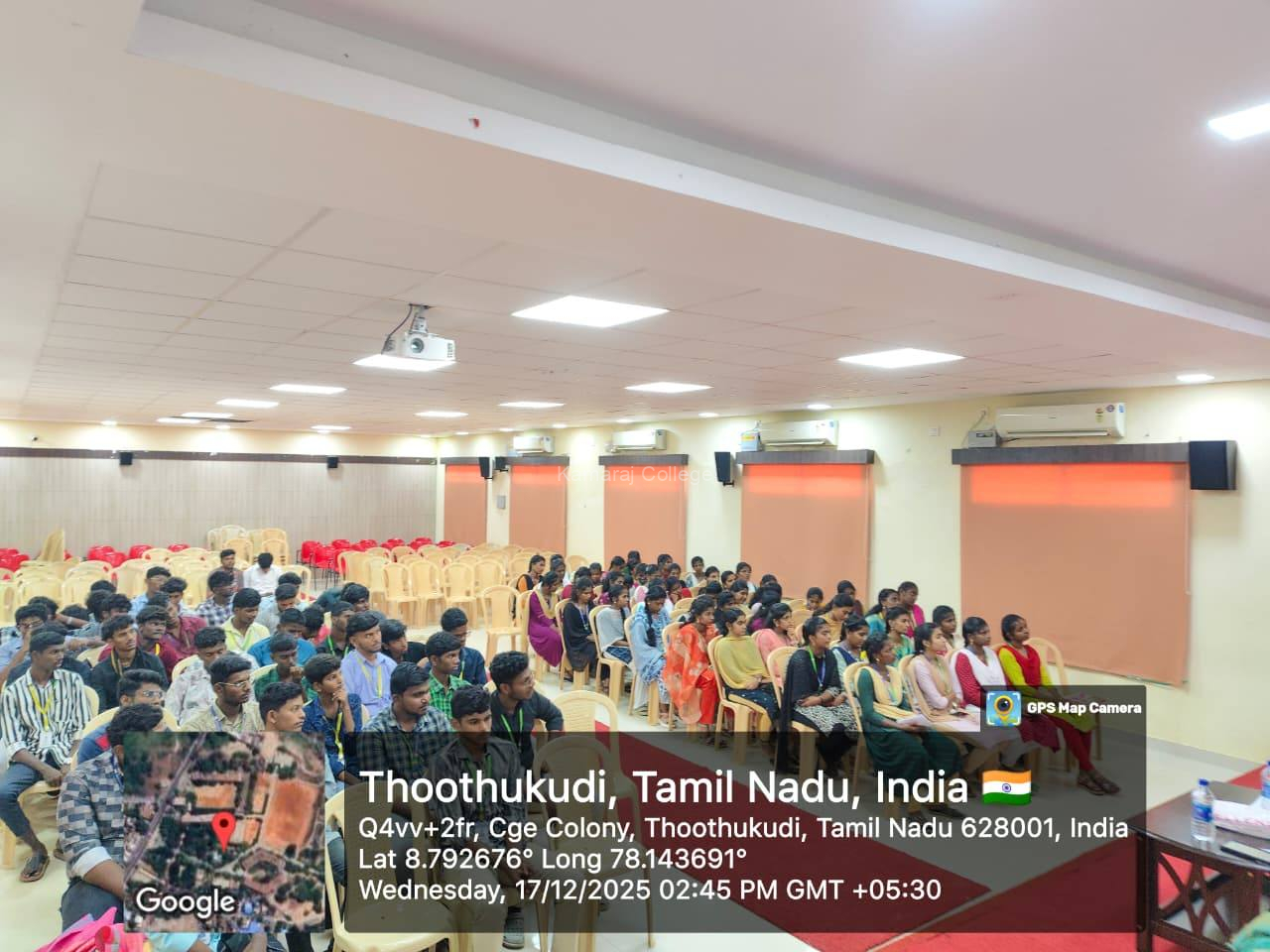 The Youth Red Cross Orientation Programme was successfully organized by the Youth Red Cross of Kamaraj College Autonomous Thoothukudi on 17 December 2025 from 01.30 pm to 03.00 pm at the Seminar Hall AMMS Ganesan Nadar Block. The programme aimed to introduce students to the values principles and activities of the Youth Red Cross movement and to inspire them to participate actively in humanitarian service.